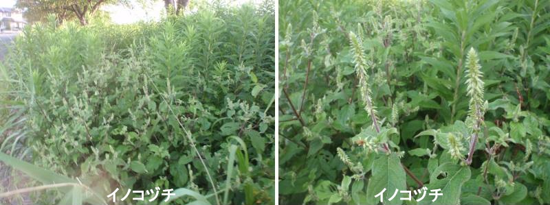 イノコズチは本州から九州に生育する多年草です。低地の森林や竹林などの日陰に生育することから、ヒナタイノコズチに対してヒカゲイノコズチとも呼ばれますが、ヒナタイノコズチも林縁などに生育するので生育立地だけでは区別はできません。植物体全体に毛がありますが、ヒナタイノコズチに比べてはるかに少なく、注意しないと毛があることがわからない程度です。茎は根元から分かれ、直立して高さ50cmを超えます。茎の上部ではあまり枝分かれしません。葉は対生し、長い楕円形で、ヒナタイノコズチに比べて端整で、ほとんど無毛。葉柄の付け根の部分には、茎に毛があります。花は8月から9月に咲き、葉腋から長さ10~20cmの穂状の花序を形成します。花軸には毛が散生しますが、ヒナタイノコズチに比べて少ないです。小苞の付け根に白色で半透明な付属体がありますが、ヒナタイノコズチに比べて大きく、目立ちます。果実は動物の体に付着して散布される、動物散布です。