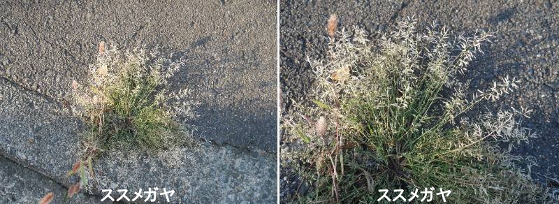 スズメガヤは、世界の温帯から熱帯地域に約300種が分布していて、日本には10種ばかりがあるということです。全般に有用なものは余りないようでが、うちテフという種はエチオピアで食用されているということです。また、日本ではシダレスズメガヤという種が路肩の土止めに利用されているということです。その他の種は余り注目されていない、というよりしつこい雑草として邪魔者にされる植物のようです。一般にイネ科の植物は花も目立たず、見分けが難しこともあって、日常的に目にしていても気付かないことが多いのでしょう。