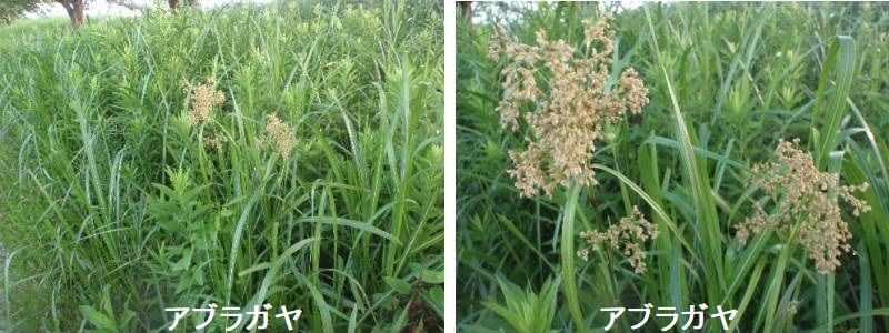 アブラガヤは、休耕田や湿地、溜池畔などの日当たりのよい湿った場所に生育する大型の多年草です。安定した湿原などよりも、攪乱を受ける湿地や、比較的遷移初期の荒れた湿った裸地などによく見られます。アブラガヤの名は、穂が油色で、油臭いことによるものです。根茎は短く叢生し、茎は高さ1~1.5mになり、質は硬く、基部の鞘は密に茎を包みます。葉は長さ20~40cm、幅5~15mm。花序は3~5個、頂生または側生し、数回分枝し、多数の小穂を密につけます。小穂は1~5個づつつき、卵形~長楕円形、長さ4~8mm、幅3~4mm、赤褐色。雌蕊柱頭は3岐します。鱗片は広倒卵形で、長さ約2mm。痩果は長さ約1mm、断面は扁稜形で、刺針状花被片は6個つき、糸状で屈曲し、長くちぢれ、先端にはまばらに上向きの小刺があります。