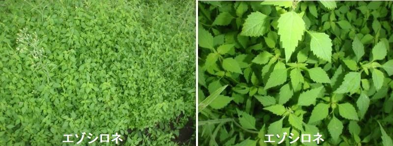 エゾシロネは山地の湿地などに生える多年草です。細長い地下茎を持ち、群生します。茎は高さ20~40cmになり、全体に細い軟毛があり、基部は暗紫色を帯びています。葉は菱状卵形で鈍頭、薄く、ごく細かい毛があって光沢はありません。葉縁には鈍頭の鋸歯がまばらにあり、基部はくさび形、長さ2~7cm、幅1~2.5cmです。萼は長さ約1.5mmで5中裂し、裂片の先端は鈍頭です。花冠は白色で、長さ約2mm。雄蕊は2個。分果は長さ約1.5mm、扁3稜形で先端の前面に不規則な突起があります。