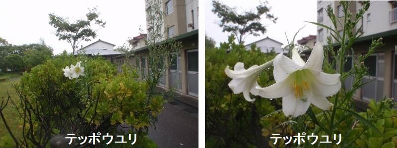 テッポウユリ(鉄砲百合)は、6~8月頃に細長いラッパのような形をした白い花を咲かせる日本固有の多年草(球根植物)です。背丈は50〜1m程で、花の先端が外側に反り返り、筒状になった花が横向きに咲きます。純白で凛とした優美な花姿はひときわ目につき観賞価値が高いです。甘い香りも特徴的です。奄美、沖縄諸島の海岸付近等で自生し、別名は、沖縄(琉球)に咲いているユリで琉球百合(リュウキュウユリ)といいます。テッポウユリ(鉄砲百合)は、茎の頂上に、ラッパのようなトランペット型の花が横向きに咲くのが特徴です。花弁が6枚あるように見えますが、漏斗状(ろうとじょう)といって、上が広くて下が細く花の根元がつながっていて筒状になっています。根元が繋がっている花を合弁花冠(ごうべんかかん)ともいいます。