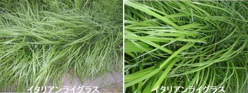 イタリアンライグラスは、ウシの嗜好性や栄養価が高く、日本で広く栽培されている一年生の冬作飼料作物です。中でも九州地域は主要な産地で、全国の栽培面積(推定約6万ha)の約7割を占めています。一般的にイタリアンライグラスは10月から11月頃に播種し(従来作型、出穂する春季に収穫します。)輸入飼料価格が高水準で推移する中、家畜の餌となる国産飼料の増産は畜産経営の安定化のために喫緊の課題となっています。秋播き性のイタリアンライグラスを春播きし、収穫後の再生草をリビングマルチとして大豆を栽培すれば、農薬なしで粗蛋白質含量13~20%の飼料が乾物で約1000kg/10a得られます。本体系の雑草抑制力は強く、無農薬でも雑草の増加・拡散は生じません。