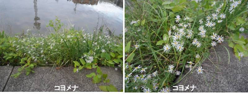 コヨメナは、秋に咲く野菊の代表といえる草花です。普通に道端で見かけるコヨメナです。密集して咲いてくれるので、見ごたえのある草花です。実際は秋に咲くコヨメナですが、種子島は温暖なところですので、場所によっては5月ごろから咲くコヨメナもあります。花びらは薄い紫色をしています。花びらの直径は3~4センチ前後で高さは30~50センチくらいです。花びらに近い葉には鋸歯はありませんが、下の方には粗めに鋸歯があります。花びらはやや後ろに反り返っているのが特徴です。葉は、同じ向きに単葉でつけたり、対生したものも見かけます。全般的に不規則的です。倒披針状楕円形で、長さは7~10センチ、幅は、1.5~2.5センチです。茎の中ほどより、縁に大きな鋸歯があります。