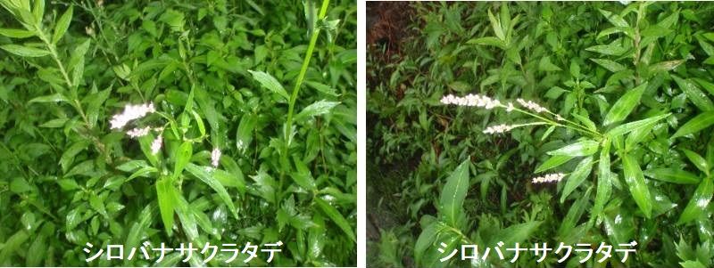 シロバナサクラタデは北海道から沖縄まで、朝鮮から中国にも分布する多年生草本です。和名の由来はサクラタデに似ていますが、花色が白である為です。ため池の岸などのように常に湿っている場所に生育します。花の色が白いことと、花穂が細くて華奢な点は、良い区別点です。根茎は地中に長く伸びて枝を分け、茎は直立して高さ30~100cmになり、よく分枝します。葉は披針形で長さ7~16cm、やや厚味があり両面に短毛が生え、先はとがっています。基部はくさび形で葉柄は短いです。花には長花柱花と短花柱花との2型があり、長花柱花では花柱が長く、雌蕊柱頭は花被の外に出ています。