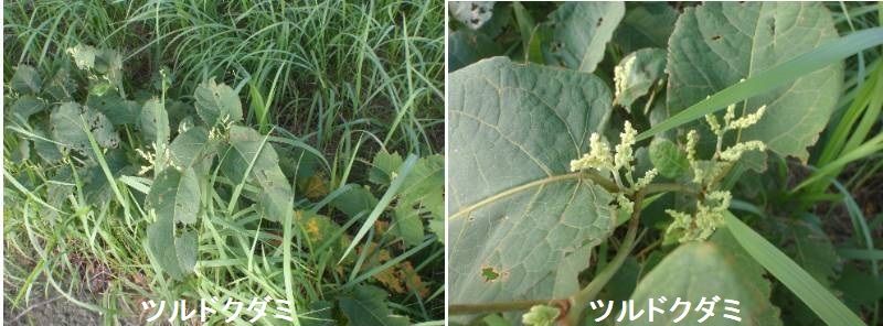 ツルドクダミは、タデ科に属するつる性多年草です。心形の葉がドクダミにやや似ていることによる命名ですが、ドクダミとは科のレベルで異なり、花の様子もまったく異なります。ですのでドクダミ特有の匂いは本種にはありません。江戸時代、長崎で薬用として導入され、その後各藩の大名屋敷などで栽培されました。当時は強精効果が信じられ、跡継ぎ問題への切り札として期待されて広まったようですが、実際にはそこまでの劇的な効果は無かったようです。そのような歴史的経緯により、現在でも各地の都市部、とりわけ城や屋敷のあった古くからの市街部を中心に、野生化したツルドクダミがしばしば観察できます。生薬名の何首烏(カシュウ)は、何という人物の首が烏のように黒くなった(=白髪が治った)という中国の故事伝承に基づく名称で、白髪や抜け毛の改善効果が古くより知られ、現在市販される多くの外用育毛剤にも配合されています。