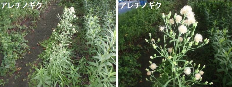 アレチノギクは南アメリカ原産の帰化植物であり、熱帯~暖帯に広く分布している。秋に芽生え、ロゼットで越冬して春から初夏に開花する1年草。明治の中頃に帰化し、一時ははびこったが近年は見ることが少なくなった。同属のオオアレチノギクにくらべ、草丈が低いので負けてしまったのではないかと思われる。画像は乾燥した放棄水田に生育していたものである。道ばたなどにも時折生育が見られる。中心から伸びた茎は30cmほどで花を付けて伸びなくなり、根本や途中から枝が出て伸びるので、多くの茎を持った草形となる。この点は主幹が明瞭で1.5mを越えるオオアレチノギクとの大きな違いである。頭花はオオアレチノギクよりも大きく、タル型である。葉はより切れ込みが大きい。