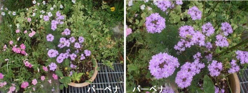 バーベナには約250種の野生種があり、主に南北アメリカの熱帯から亜熱帯に分布していますが、日本にもクマツヅラ1種が自生しています。花が少ない真夏の炎天下でも生育おう盛で、春から晩秋まで咲き続けます。本来多年草ですが、耐寒性がやや弱いことから、日本では園芸的に一年草として扱われる品種と、比較的耐寒性があって多年草となる品種とがあります。前者はタネで、後者はさし木でふやされています。3月から6月を中心にポット苗が出回り、さし木でふやす栄養繁殖系品種の多くにはラベルがついて、品種名が明記されています。草姿は茎がやや立ち上がるものと、横へ横へとほふくするものとがあります。ほふく性のものは栄養繁殖系品種に多く、暑さ寒さに強く、育てやすいです。
