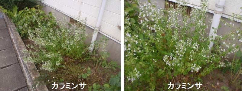 カラミンサは、白、ピンク、淡紫色の小さな花が柔らかい茎に群がって咲き、すがすがしいミントの香りを漂わせる宿根草です。葉はハーブティーとしても利用できます。耐暑性、耐寒性に富み、真夏は花が少なくなるものの、初夏から秋まで長期間開花します。性質は丈夫で、植えた翌年にはこんもりとよく茂ります。一般に、カラミンサというとネペタを指すことが多いですが、ほかに花の大きいグランディフローラやその斑入り品種が流通します。ネペタは、葉も花も小さく、切り花の宿根カスミソウのような添え花的な使い方ができるので、寄せ植えなどにも適しています。