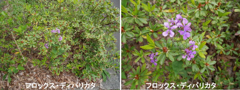 フロックス・ディバリカタは這性フロックスの一種で、春から初夏に白や薄紫の花が開花する宿根草です。開花時になると株元から花茎を伸ばし、茎先に複数の花が開花します。花は石鹸に似たほのかな香りがあります。横に広がるように生長しますが、這性フロックスのストロニフェラ種のようには広がらず、生長は比較的穏やかです。透明感のある白や薄紫色の楚々とした花は、さまざまな色の花となじみやすく、野草的な雰囲気もあります。花期はさほど長くはありませんが、花付きが良く、春から初夏の庭を素敵に演出してくれます。