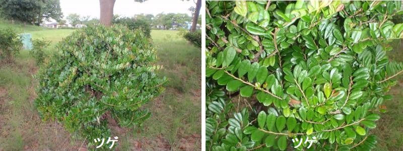 ツゲは、本州中南部(山形県/宮城県以南)、伊豆諸島、四国及び九州の石灰岩地に自生するツゲ科の常緑低木です。日本で最も緻密かつ重厚な材となり、櫛、根付、印鑑、ソロバン、木箱、将棋の駒、琵琶のバチなどを作ることで知られています。ツゲという名前の語源には、細かな葉が次々に出て層を成すことから「継ぐ」あるいは「次」、木目が丈夫なため「強木目木(つよきめぎ)」、梅雨の時期に葉が黄色くなって入れ替わることから「梅雨黄(つゆき)」とされ、それらが転訛したとする説があります。ツゲの漢字表記は「黄楊」「柘植」「柘」ですが、「柘」は中国語でハリグワを意味します。別名の「ホンツゲ」はよく似たイヌツゲに対するもの、「アサマツゲ」は自生地の一つである三重県の朝熊山にちなみます。