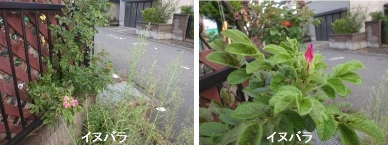 イヌバラは、原種バラのひとつ、「ロサ・カニーナ」です。日本では接ぎ木用台木にはノイバラが使われますが、ヨーロッパではこのバラが台木に利用されることが多いそうです。別名「イヌバラ(英名:DOG ROSE)」とも呼ばれていて、これは、栽培用のバラに比べて価値が低いという意味という説と、狂犬病の治療に効くからだという説があるそうです。日本では頻繁に目にすることはないと思いますが、ヨーロッパではありふれたバラなのでしょうか。価値がないという意味でイヌバラと呼ばれているだったら、何とも不当な扱われ方です。一重に咲いたピンクがかった花は可愛らしく、弱々しい見た目の割には花もちの面ではは、すごく弱いわけではありません。更にいいのは秋にローズ・ヒップが出来ることです。四季咲きに匹敵する魅力だと思います。宝塚のニュー・ローズさんで購入した時に聞いた話では、トゲがある個体と、ない(少ない)個体があるそうで、うちの個体はトゲは少なめ。全くないワケではないです。