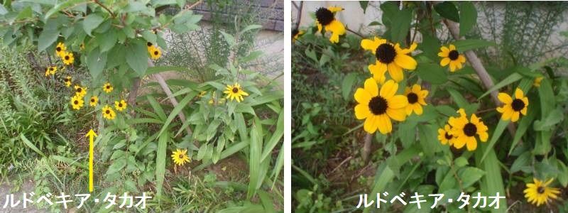 ルドベキア・タカオはルドベキア・トリロバの園芸品種で、夏から秋に無数の黄色い花が開花する多年草です。その見た目からBrown-eyed Susanという英名があります。多年草の中では短命な部類のため二年草とされることもありますが、こぼれ種で増えていくほど繁殖力は旺盛です。ルドベキアの中でも分枝性に優れ、小輪の花が無数に開花し、真夏も休みなく咲き続けます。花は小輪ですが高性なので、大株になると存在感があります。こぼれ種でも増えていくので、親株がどれなのかがわからなくなるほどです。真夏も休みなく咲き続け、強い日差しでも葉焼けすることがないため、温暖地の夏の庭にもうってつけの草花です。