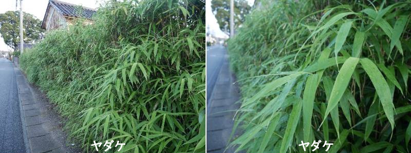 ヤダケは、本州、四国及び九州の山野に自生するヤダケ属のササで、シノダケと呼ばれるものの一つです。棹の節が低く、節間が長いのが特徴です。「矢竹」の名前のどおり、かつては矢柄(矢の棒の部分)に、現代では釣竿や庭木として使われていました。日本以外では韓国に分布。漢字表記には「箭」あるいは「箭竹」もあります。葉は厚くて大きく、尾状に尖って垂れ下がっています。長さ4~30センチ、幅2~4センチほどで両面ともに無毛です。表面は深い緑色で光沢があり、裏面は白っぽくなります。葉は枝先に22~7枚ずつ生じ、7~8月に稀に開花するとコメ粒ほどの実ができます。