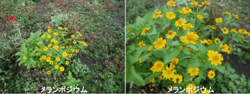 メランポジウムは、こんもりと茂った株に、明るい黄色の小花を休みなく咲かせます。高温多湿に強く、肥料分の少ない土地でもよく育つので、春まきして育てる丈夫な夏の草花として人気があります。メランポジウム属の植物は、メキシコから中央アメリカを中心に80種ほどが分布していますが、このうち栽培されているのは、メキシコを中心に分布するディバリカツム種1種のみです。乾きすぎない日なたを好みます。花が咲き終わった上を覆い隠すように新芽が伸びて新たな花が咲くので、花がら摘みをしなくても、いつもきれいな株姿を楽しめます。若い苗のときは生育が遅いですが、暑くなるにつれて、ぐんぐん大きく育ちます。肥料分が少なくても育つ反面、肥料を施しすぎると生育不良を起こすので注意します。