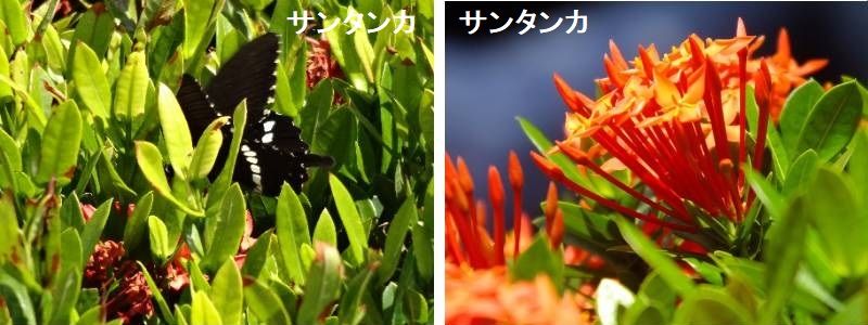サンタンカは丈夫でよく開花するので、鉢物として出回るほか、熱帯地域では庭木として広く親しまれています。沖縄では、よくサンダンカといわれています。花色は最も一般的なのは赤色ですが、ほかにもいろいろな色があります。種類によって、5号くらいの手ごろな大きさの鉢で楽しめるほか、1m近くになり10号鉢程度の鉢に植えると見ごたえのある株になる種類もあります。アカネ科の熱帯の常緑低木の花木で、サンダンカ(三段花)とも云います。朱紅色,橙色,白色などの小花が多数,密に半球状に集まり,美しくまた開花期間も長いので,鉢植えや切花としてよく使われています。サンタンカは沖縄地方で主に見られる常緑低木です。 沖縄三大名花にも数えられており、沖縄県では「サンダンカ」の名前でも知られています。 赤やオレンジなど様々な色の花を咲かせる品種があり、樹高は高いものでも1mほどです。 花屋では切り花としても販売されています。