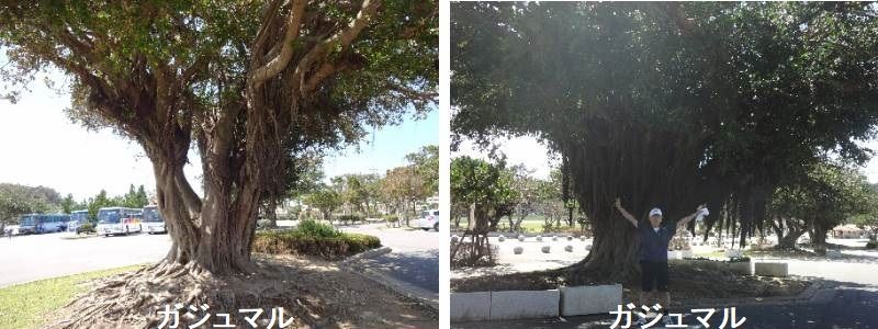 ガジュマルは東南アジアを中心とした幅広い地域に分布する高木です。沖縄や小笠原、屋久島でも防風や防潮の為に植えられたガジュマルの林を見ることができ、屋久島・志戸子(しとこ:ガジュマルが植裁可能な北限)のガジュマル園はその本来の目的としてだけではなく、観光地としても有名です。巨木も比較的容易に移植できるので、ビルの吹き抜けなどで存在感たっぷりにどーんと植えられているものも見ます。枝葉が密に付くので、刈り込みにも向きます。イチジクをぐっと小さくしたような直径1cmほどの果実(花嚢-かのう-)ができ、オレンジ~赤に熟します。葉は光沢があり厚みがあります。色は濃い緑で長さ6cm前後の卵形です。幹の途中から気根と呼ばれる根を何本も出し、それがどんどん伸びて地面に付くと肥大して生長し、木を支える支柱根となります。巨大なものは20mもの高さになります。