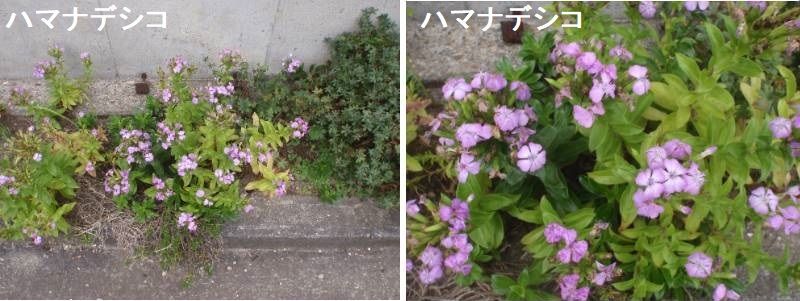 ハマナデシコは海岸の崖地や砂浜に生育しています。岩の割れ目などに生育している場合には、しっかりと根を張り、点々と生育していますが、砂浜では群落を形成します。花を咲かせない若い個体はロゼットを形成します。群落を形成している場所を見ると、花を咲かせている個体が集まっている場所や、ロゼットの段階の個体が群落を形成している場所があります。砂がうち寄せて生育できる場所が形成されると、一挙に新しい個体が芽生えるように見えます。岩場に生育している個体は当分その場所に生育するのでしょうが、砂浜での生育は、砂の動きによって群落が形成されたり、なくなったりするのでしょう。地球温暖化にともなう海面上昇は、このような植物の生育に大きな影響を与えそうです。