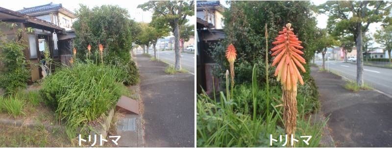 トリトマは、熱帯アフリカ、南アフリカに約70種が分布します。標高1000m以上の高地に分布するものが多いです。現在はクニフォフィア属に分類されますが、昔の属名がトリトマだったので、現在でもこの名前で呼ばれます。地際から細長い葉をわさわさだして、その葉の間から花茎を伸ばして上部に筒状の小さな花を穂状にたくさん付けます。花は黄色やオレンジなど暖色系のものが多いです。花の見た目はアロエに似ています。属名のクニフォフィアは植物学者クニフォフの名前にちなみます。和名でシャグマユリとも呼ばれます。これは花穂を兜などの装飾に使われるふっさふさの赤い毛=赤熊(しゃぐま)に見立てて付けられました。旧属名のトリトマはトリスとトメ(切断)からなり、花の内部構造に由来します。