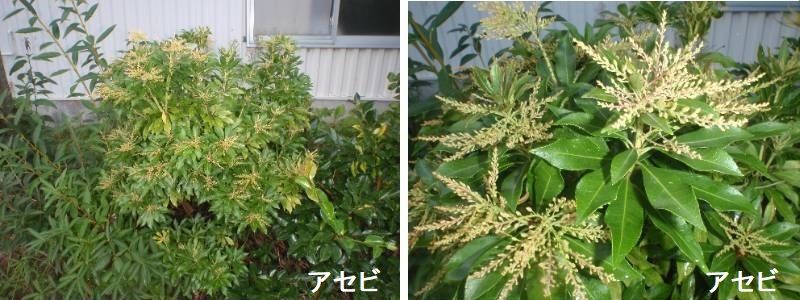 アセビは、本州(山形県~宮城県以西)、四国及び九州に分布するツツジ科の常緑低木です。日本特産の木で、やや乾燥した林内や砂礫地、山の尾根などに群生することが多いです。アセビは葉に毒がある有毒植物で、それが名前の由来に関係しています。漢字では馬酔木と書き、馬が葉を食べると、毒で酔った様にふらつくいてしまう木ということから、この名が付いたと言われています。昔から私たちの生活になじみがあり、万葉集にも出てくる他に葉を煎じて殺虫剤として利用されていたそうです。公園のアセビは白い花を咲かせ、高さも1mほどですが、野山で見かける大きいもので9mにもなります。公園や野山で見かけても決して口にしないでくださいね。