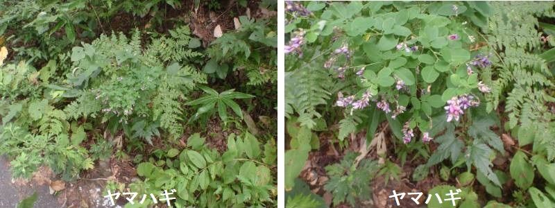 北海道から九州まで日本各地の山野に生えるマメ科ハギ属の落葉低木。秋に咲く淡い紅紫の花を観賞するため、庭園や公園、川岸などに植栽され、「草」ではないですが「秋の七草」に数えられています。ハギの仲間は北半球に約60種ありますが、日本にはヤマハギに代表され、木として扱われる8種と、メドハギに代表される、草のハギ4種が分布しています。ハギという植物はありませんが本種が最も一般的であるため、単にハギという場合はヤマハギを示すことが多いです。ヤマハギの開花は8~10月です。花は直径1センチ程度の小さな蝶形です。派手さのないところが昔から好まれる所以ですが、花期は長く、満開がはっきりしないまま咲き続け、いつの間にか花が消えます。古来からハギの花の終わりは「花が零れる」と表現されています。
