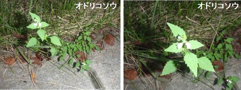 オドリコソウは,人里や草地の林縁に多い多年草ですが,生育する環境は幅広く,山地の林のなかで見られることもあります。花の形を扇子を持って菅笠をかぶった踊り子に見立ててこの名があります。花の色は淡紅紫色と白色があり,地域によってだいたいどちらかに決まっており,両方が混生することは多くないです。九州や四国,そして東北北部などで紅紫色が多く,その他の地域では白花をよく見かけます。同じ属で同じ頃に花が咲くものは,ヒメオドリコソウやホトケノザがありますが,草丈が足首ぐらいまでとごく小型なので,すね以上になるオドリコソウとは簡単に見分けがつきます。