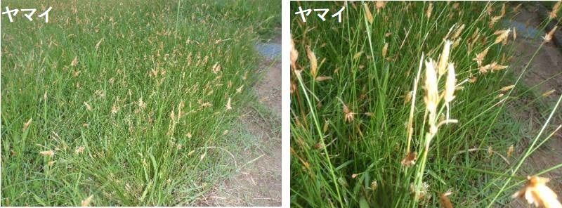 ヤマイ は、カヤツリグサ科テンツキ属の植物で、細い茎の先端に一つだけ小穂をつけます。やや湿ったところには普通に見られます。テンツキ属の中では普通に見られるもののひとつですが、一般のテンツキ属のものは花茎の先端に散房花序の形で多数の小穂をつけるのに、この種はただ一つのやや大きな小穂のみをつけます。根茎はごく短く、まとまった株立ちとなります。根出葉は数多く、いずれも細くてつやがあり、毛はありません。初夏から穂が出始める。花茎は高さ10~60cm、小穂の基部には一枚の苞があります。苞は狭いながらも葉状で、小穂よりも少し長いです。果実はやや偏平な倒卵形で、褐色で表面には特に模様はありません。名前は山藺で「山あいに出る藺草のような草」であって「病」ではありません。