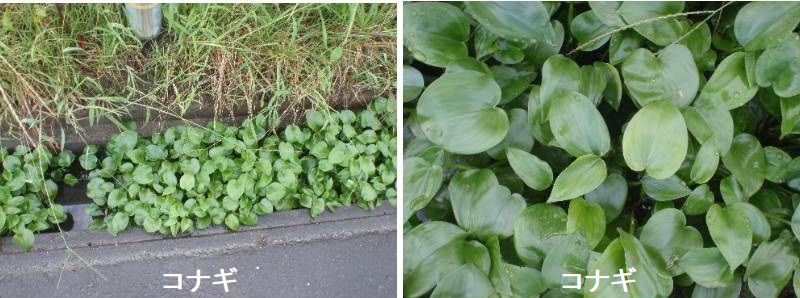 コナギは、水田とその周辺の湿った場所にたくさん生える1年草です。水田地帯ではありふれた草ですが、それ以外の環境にはあまり見られません。古くはナギ(水葱)とも呼ばれていました。ホテイアオイと同じ仲間ですが、ホテイアオイのように水面に漂うのではなく、水底に根を下ろしそこから葉を出します。水の深さに応じて体のかたちは大きく変化します。水がなくとも生育可能ですが、土がひどく乾燥すると弱ってしまいます。花は秋に咲きます。その日の気温によって異なりますが、ふつうは午前中のうちにしぼんでしまいます。直径は2センチあるかどうかと小さいのですが、鮮やかな青紫色でよく目立ちます。同じ仲間のミズアオイは葉の上に花の穂を出すのに対し、コナギの花は葉よりも低い位置につきます。