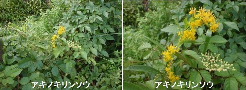 秋に咲く黄色い花の代表格「秋の麒麟草(キリンソウ)」。花の美しさがキリンソウに匹敵し、秋に咲くので名付けられたようです。キリンソウは、ベンケイソウ科で花の色のほかには共通点はありません。麒麟は、中国古代の想像上の動物で、ビールのキリンの図に使われています。別名は「泡立草(アワダチソウ)」。小さな花が多数集まって咲く姿が、酒をつくる時の泡立つ様子に似ているので付いた名です。北米原産のセイタカアワダチソウの名のもとになっています。キク科のアキノキリンソウ属は、ほとんどが北半球に分布し、北米には80種以上もあるそうです。アメリカでは、この属の仲間を黄金の鞭(むち)を意味するゴールデン・ロッドと呼んでいます。アキノキリンソウは、本州、四国、九州に分布し、日当たりのよい山野によく生える多年草です。