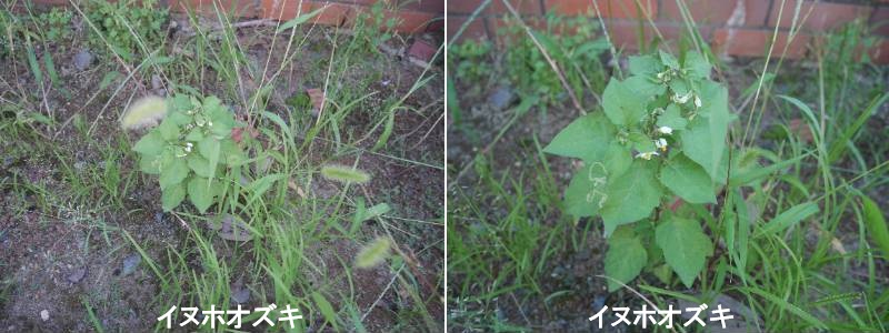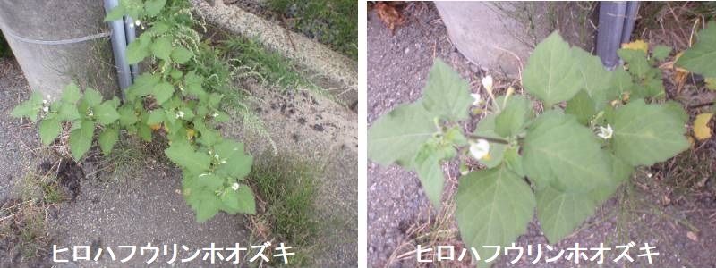 ヒロハフウリンホオズキは、北アメリカ原産で、温暖な地域を中心に見られ、ダイズ畑やアズキ畑の厄介な雑草として君臨しています。長らくセンナリホオズキと混同されていましたが、ヒロハフウリンホオズキとセンナリホオズキはよく似た別種です。夏から秋にかけて、直径1cmほどの小さな淡黄色の花を下向きに咲かせます。花冠は五角形で、中心付近に茶色い模様があります。花後果実が大きく膨らんで袋状になり、その中に丸い果実が1個できます。変種に細長い葉をつけるホソバフウリンホオズキがあります。ホソバフウリンホオズキは花がひとまわり小さく、中心付近の茶色い模様はありません。ただヒロハフウリンホオズキとホソバフウリンホオズキの中間的な姿のものもあり、それはアイフウリンホオズキと呼ばれています。