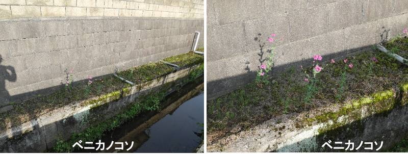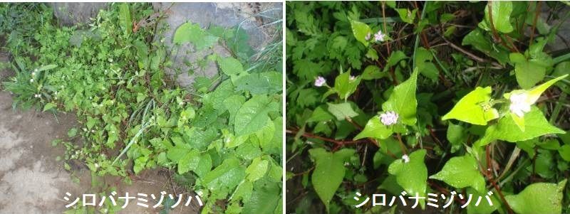 シロバナミゾソバの花はミヤマタニソバに似ていますが、葉の形、托葉はミゾソバと同じように見えます。水田周り、水辺などでふつうに生える1年草で、高さは30~100センチ位です。茎の下部は地を這い、上部は立ち上がります。茎、葉柄、葉の下面に刺があります。葉は互生し、先は鋭く尖り、基部は左右に張り出しほこ形になり,中部がくびれたようになり、八の字形の黒い模様があります。葉柄の翼は目立ちません。托葉鞘は短い筒形で毛があり、時に上部が葉状に広がっています。花は茎頂にまとまって付き、花被は下部が白色で上部は紅紫色、長さ4~7ミリ、先は5裂しています。花期は7~10月です。北海道~沖縄県に分布しています。