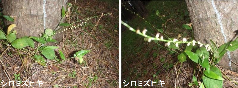 ミズヒキは、日本全国の山地や平野の路傍、草藪などに見られるタデ科ミズヒキ属の多年草です。紅白に彩られる花や果実の様子を、祝儀袋などに使う水引に見立てて命名されました。日本以外でも中国、朝鮮半島、ベトナムなどに分布し、庭園にも植栽されています。ミズヒキの開花は88~10月です。茎先から長さ20~40センチほどの細い花穂を数本伸ばし、直径2~3ミリの花を穂状に咲かせます。花には雌雄があり、雌花には1本の雌しべが、雄花には5本の雄しべがあるものの花弁はありません。花弁のように見えるのが萼で、雄花にある十字型の「萼片」は上の三つが赤く、下の一つが白いため、花を上から見れば紅く、下から見れば白く見えます。写真はシロミズヒキです。
