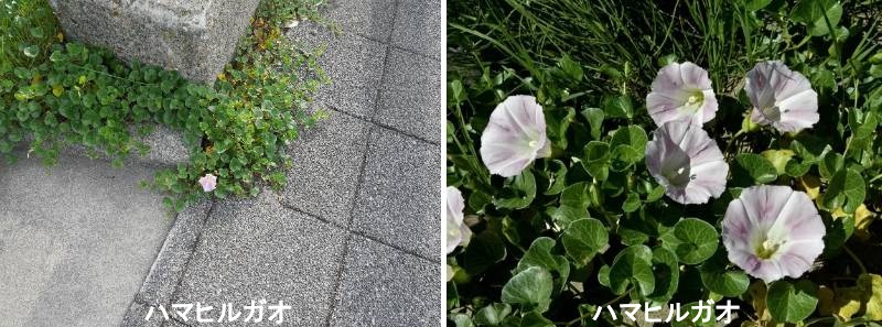 日本全土の海岸の砂地に生えています。砂の中に白色の地下茎を長く伸ばしてふえます。茎は砂の上をはい、なにかあれば巻きついたりして広がります。葉は互生し、長さ2〜4cm、幅3〜5cmの腎円形で基部は深い心形で、厚くて光沢があります。葉腋から長い花柄をだし、先端に淡紅色の花をつけます。花冠は直径4〜5cmの太い漏斗形。雄しべ5個と雌しべは花筒の中にあり、苞は広卵状三角形で萼を包んでいます。花は5~6月頃に咲き、ピンク色で、アサガオのような形をし、径は4~5cmです。果実は大きくほぼ球形です。ヒルガオやコヒルガオなど花が似ている種類がいろいろありますので、葉の形にも注目してください。また、海岸や湖岸の砂地に生えているかどうかも識別するときの重要なポイントです。