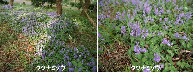 タツナミソウは、平地から低山の草原や道端、森林内の開けた場所などに生えます。茎をまっすぐに立てて株立ちになり、地下茎を伸ばしてふえます。茎の先端に長さ約3cmで独特の形の花穂をつけ、それが波頭に見立てられています。茎の表面から直角に立つ毛(開出毛)が生えているのが特徴です。花色は紫が基本ですが、藤色、赤紫、濃淡がある桃色、白もあります。いくつか花色が異なるものを混ぜて植えておくと、自然に交配してできたこぼれダネから異なった色合いの花が出てきて楽しいものです。花には普通に開く花と、小さな蕾の形のままの閉鎖花の2つのタイプがあり、5月ごろの開花期以降は閉鎖花をつけます。タツナミソウ(立浪草)は、シソ科タツナミソウ属の多年草で、その独特な花姿が波頭を連想させることから名付けられました。春から初夏にかけて、日の当たる方向に向かって、繊細な模様のある花を咲かせます。