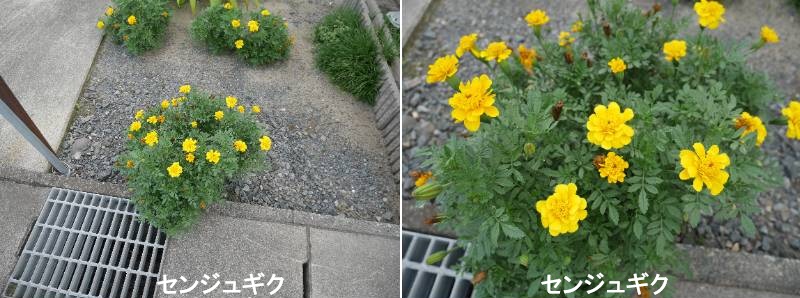 センジュギクは、キク科の多年草で、日本や中国に自生しています。切花に栽培される園芸種マリゴールドには、アフリカン・マリゴールドとフレンチ・マリゴールドがあります。マリゴールドはメキシコ原産の一年草で、古くから改良が進み園芸種として多数の品種があり、大別してフレンチ種とアフリカン種