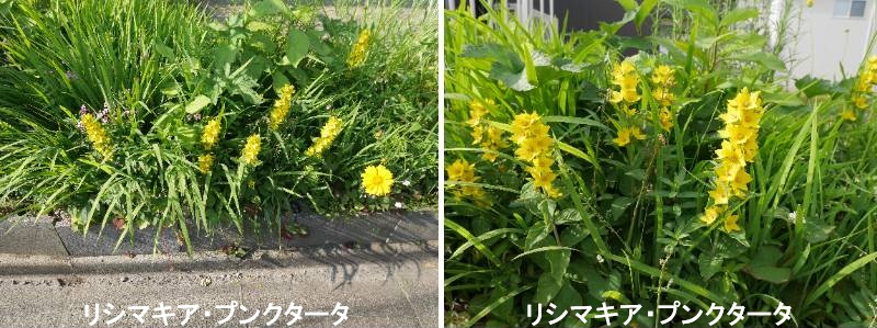 リシマキア・プンクタータは、中央および南ヨーロッパ、トルコに分布するサクラソウ科オカトラノオ属(リシマキア属)の多年草です。美しい花を咲かせることから観賞用として広く栽培されており、現在では北アメリカの多くの地域で帰化植物として定着しています。分布域は溝や道路脇、池の畔などにあり、日当たりが良くやや湿り気のある土壌を好んで自生しています。リシマキア・プンクタータの花期は6月~8月です。花期になると、上部の茎の葉の付け根から花柄を伸ばし、花径2~3㎝程度の花を輪生状に咲かせます。花は黄色い5枚の花弁を持つ杯状で、花弁の基部はやや赤みを帯び、下から上へと咲きあがります。花色は黄色のみです。葉は先の尖った長楕円形で、縁はゆるく波打ち、輪生または対生します。葉茎には細かい毛が密生しています。茎はあまり分枝せず直立し、花を咲かせながら草丈60~90㎝程度に成長します。葉に斑の入る斑入り品種もあります。