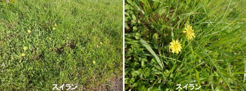 スイランは中部地方以西の本州から九州に分布する多年草ですが、近年温暖化の影響で東北地方でも確認されています。低地の湿原やその周辺、貧栄養な溜池の湖岸などに生育します。地下茎があり、長さ15~40cmほどの細長い根出葉を出します。葉の縁には不明瞭な鋸歯がまばらにあり、柔らかいがやや厚く、裏面は粉白色であり、両面無毛で切ると白い乳液がでます。9月から10月にかけ、高さ50~80cmほどの花茎を出し、分枝してその先端に頭花をつけます。頭花は直径3~3.5cmで、ニガナの仲間とよく似た黄色い花を咲かせます。9月頃はまだ根出葉は残っていますが、10月の終わり頃になると葉は枯れてしまい、茎の上に花だけが咲いている状態になります。スイランの和名を漢字で書くと水蘭です。花を見るとキクの花であり、とても蘭とはいい難いです。