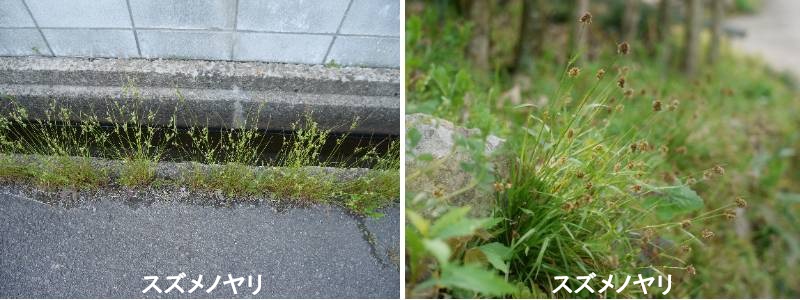 スズメノヤリは、単子葉植物イグサ科に属する植物です。見かけはイグサには似ず、小柄なイネ科植物に見えます。茎は短くて地中にあり、地表には根出葉だけを伸ばします。葉はイネ科植物のような線形の細長い形で、ゆるやかに曲がって、断面は浅いU字になっています。葉は緑色でややつやがあり、縁に沿って長くて白い毛がまばらに生えています。また、葉の先端がすらりと細くなるのではなく、先端の部分が細いながらも厚い棒状の形になって終わっています。日本産の同属のものは、ほとんどがこの特徴をもつので、ここに気をつければ花がなくても見分けがつきます。3月ころに穂を伸ばします。10cm位の細長い花茎が伸びて、その先端に花が頭状に集まっています。見かけ上は個々の花ははっきりせず、赤褐色のくす玉のような固まりが着いているように見えます。固まりは一つ、あるいは二つくらいに分かれており、時には短い柄を伸ばしてその先により小さな固まりをつけます。なお、花茎の途中には一枚の苞葉がついています。