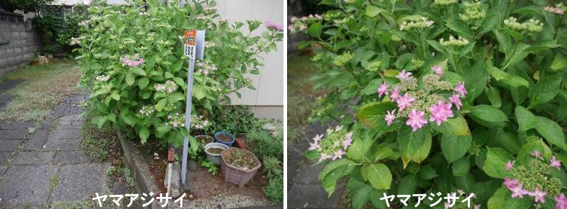 ヤマアジサイは、主に太平洋側の福島県から四国・九州に分布しています。半日陰の湿り気のある林や沢沿いに生育しています。このことから別名のサワアジサイの名前がつきました。周辺の自然によくなじんでいる樹木です。中央から花の外側に向かって咲き、縁に沿って装飾花をつけてガクアジサイと同じようにガク咲きとなります。装飾花(中性花)の萼片は、白色または白青色で少し反り返りますが、紅色を帯びることもあります。ガクアジサイよりも花序が小型なので、コガクと呼ばれることもあります。アジサイに比べて葉は、薄くて細長く小型です。野趣に富んだ樹形で、花色や花形は地域による変異が多く、愛好家の間で人気の高い花木です。
