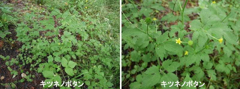 キツネノボタン(狐の牡丹)は、キンポウゲ科キンポウゲ属の多年草で、実の形からコンペイトウグサと呼ばれることもあり、秋田県雄勝郡、山形県酒田市、新潟県佐渡市、長野県下水内郡、福岡県山門郡・八女郡・柳川市、大分県南海部郡・佐伯市ではウマゼリとも呼ばれています。山道でキツネノボタンの可愛らしい花が咲いていた。家の近くに生えていたものがキツネノボタンではなくウマノアシガタだと最近気がつきましたが、こちらは種の先端が鉤爪状になっており、葉も完全に3つに分かれた複葉となっているのでキツネノボタンで間違いなさそうです。この葉の形が牡丹に似ていることから名付けられたそうです。日当たりの良い斜面ではウマノアシガタが大きく堂々と生える一方で、日陰の山道ではキツネノボタンが小さくひっそり咲いており、力関係の一端を見た気持ちです。