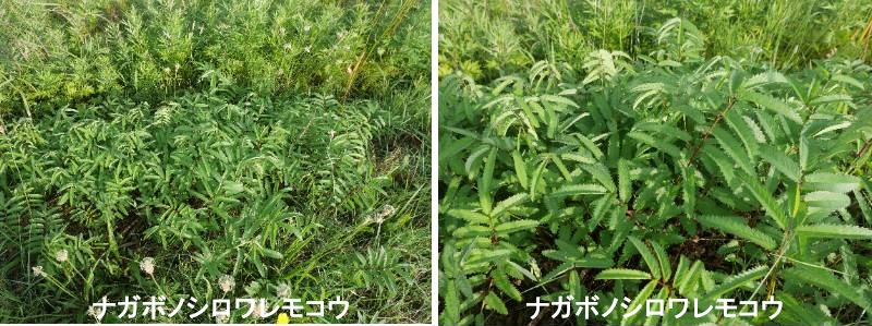ナガボノシロワレモコウは湿原や湿性の草原に生育する多年草です。北海道・関東地方以北の本州、樺太に分布しますが、中国地方などにも隔離分布しています。湿原に生育する植物は、氷河時代に分布したものが生き残っていることがあり、ナガボノシロワレモコウもその例の1つです。地下に太い根茎があり、8月から10月にかけ、高さ1mほどの茎を出して花を付けます。茎の上部は枝分かれして長さ2~5cm程の花穂を出し、長いものは垂れ下がります。花は先端から咲き始め、花弁はありません。萼片は4枚で白色であり、これが花の色となっています。雄しべは4本で長く、黒い葯が目立ちます。葉は11~15の小葉からなり、小葉の幅は狭いく、三角形の鋸歯があります。ナガボノワレモコウはコバナワレモコウ(白花)とワレモコウとの間にできた自然雑種と考えられ、連続的な変異が見られます。ナガボノワレモコウとコバナノワレモコウは区別が難しく、すべてナガボノワレモコウに含めるという見解もあります。