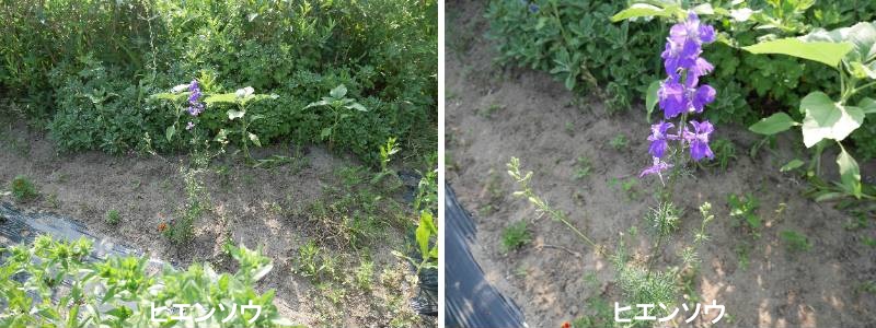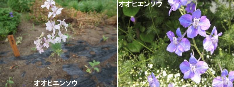 ヒエンソウは、高く伸びた花茎に青や紫、白、ピンクの花をたくさん咲かせるかわいらしい花です。名前の由来は、花の後ろに距 (きょ)と呼ばれるしっぽのような部分があり、