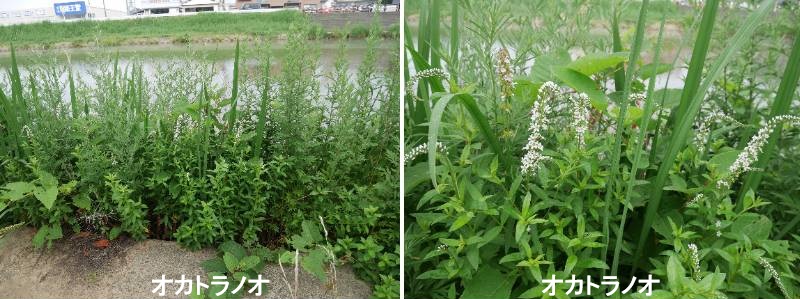オカトラノオは平地から低い山地の日当たりのよい草地や道端に見られる多年草です。冬は地上部が枯れます。茎はまっすぐに立ち上がり、多数の卵形の葉をつけます。茎の先端に長さ15cm前後の花穂をつけ、多数の花を咲かせます。花穂は途中で横向きに曲がっているのが特徴です。葉や茎に短い毛があります。地下に細長い地下茎が多数あり、これを伸ばしてふえていきます。そのため群生しているのが普通です。草本の花も春に比べ少なくなっては来ましたが、7月にかけて白い花を咲かせるのがサクラソウ科のオカトラノオです。