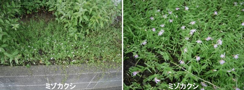 ミゾカクシは、北海道~沖縄の各地に分布するキキョウ科の多年草です。水田の畔や溝などの湿った場所に生じ、時には地面が見えないほど群生するため、ミゾカクシ(溝隠し)と名付けられました。植物を編んで作った敷物の筵(むしろ)に例えた別名、アゼムシロも同様の意味合いです。ミゾカクシの開花は夏~秋で、葉の脇から伸びた長めの花茎の先端に、淡い紅紫の花が一輪ずつ上向きに咲きます。花は直径1センチほどの唇形で上唇は二つに、下唇は三つに裂けていますが、サワギキョウのように下半分へ偏るように咲きます。葉は長さ15mm、幅3mmほどの長楕円形で、茎から互い違いに、ややまばらに生じます。茎は細く枝分かれしながら地面を這うように広がり、節から根を出してさらに広がります。草丈は10~20cmほどで全体に無毛です。ミゾカクシは全草にアルカロイド系のロベリンを含んでおり、新芽や茎などを誤って食べると嘔吐、胃腸痙攣、呼吸麻痺などの症状に陥いります。食用するセリと同じような場所に生えるため、混入しないよう留意する必要があります。