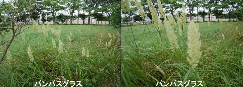 パンパスグラスは、庭植え用の苗として流通するほかに、秋に切り花としてもたくさん出回ります。庭植えのものを切り花として利用する場合、花穂が出る前の棒状のさやをナイフで削って、強制的に若い花穂を露出させると、光沢があってきれいです。ただし、葉の縁がノコギリ状になっているので、手を切らないよう、取り扱いには注意しましょう。パンパスグラスは、南アメリカとニュージーランド、ニューギニアに分布するススキに似た多年草で、約20種が知られています。栽培されるのは、明治中ごろに渡来したセロアナ種です。雌雄異株で、雌株の花穂には長い毛があり、観賞価値が高くなります。耐寒性は強くなく、2~3℃程度です。地中まで凍ると傷むので、若苗は凍らせないように防寒が必要です。寒冷地では大株でも防寒しないと、株が弱ります。