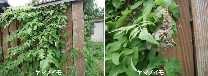 ヤマノイモ(山の芋)は、ヤマノイモ科ヤマノイモ属のつる性多年草で、地下茎が芋状に発達したものを食用とします。山に自生するものだけでなく、栽培されることもあります。一般的に「ヤマイモ」と呼ばれることもありますが、これはサトイモと区別するための総称でもあります。北海道〜沖縄の山野にふつうに生えています。葉は対生し、長さ5〜10cmの三角状披針形で基部は心形、先は長くとがっています。葉腋にしばしば珠芽(ムカゴ)がつき、雌雄異株です。雄花序は葉腋から直立し、白い小さな花を多数つけます。花被片は6個あり、雌花序は葉腋から垂れ下がり、白い花がまばらにつきます。雌花はやや小さく、子房に翼があります。成熟すると翼が大きく張りだし、さく果は下向きにつき、扁平な丸い翼が3個あります。種子は円形で周りに薄い翼があり、花期は7〜8月です。