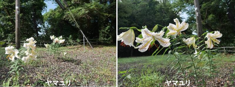 日本では地方によって様々な別の呼び名があり、ヨシノユリ(吉野百合、芳野百合)、エイザンユリ(叡山百合)、ホウライジユリ(蓬莱寺百合、鳳来寺百合)、リョウリユリなどともよばれていて、各産地に因んで名付けられています。。日本特産のユリで、北陸地方を除く本州の近畿地方以北の山地に分布し、山地、山野の林縁や草地に自生しています。北海道や九州には栽培していたものが野生化したものが見られ、観賞用に多く栽培もされています。日当たりのよい原野、丘陵などに生えていて、夏の里山の植林地などの木漏れ日が当たるところでは、ひときわ目立つ白い花を咲かせているヤマユリが見かけられます。