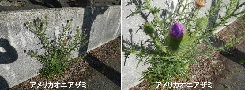 アメリカオニアザミは、ヨーロッパ原産のキク科の植物で、生態系被害防止外来種に指定されています。日本では、7月から10月頃に紅紫色の花を咲かせ、繁殖力が非常に強く、在来の植物の生育場所を奪うなどの影響が懸念されています。また、葉や茎に鋭いトゲを持つため、人やペットを傷つける危険もあります。アメリカオニアザミは、名前に「アメリカ」とありますが、ヨーロッパ原産のキク科アザミ属の多年草で、北アメリカから輸入された穀物や牧草に混入して持ち込まれました。茎の高さは0.5メートルから1.5メートル、大きい個体は2メートルにもなり、夏から秋にかけて紅紫色の花を咲かせます。種にはタンポポのような綿毛がついており、風に乗って拡散します。葉や茎にはとても鋭いトゲがあるため、人や動物にケガをさせることがあり、動物もアメリカオニアザミを捕食することはありません。また、アメリカオニアザミは大変繁殖力が強く、その土地にあった植物(在来種)の生育場所を占領し、駆逐してしまう恐れがあり、環境省により生態系被害防止外来種に指定されています。