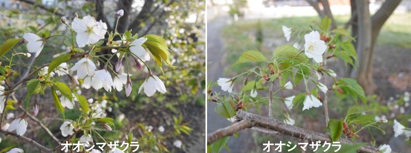 オオシマザクラ(大島桜)は、伊豆諸島や伊豆半島を中心に自生する日本固有の野生サクラ(バラ科)です。4月上旬に、香りのある白い大輪の花を、新緑の緑葉と同時に咲かせるのが特徴。ソメイヨシノなどの園芸品種の原種でもあり、葉の塩漬けは桜餅の皮として利用されます。花と緑の葉が同時に開くため、遠目には白と黄緑のコントラストが美しいです。花に芳香があり、葉にもクマリンと呼ばれる香り成分があります。葉は大きく、表面に毛がありません。