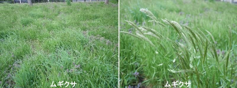 ムギクサは市街地や農地に見られる雑草で、栽培種の大麦と同じ属に分類されます。小麦、ライ麦、大麦はそれぞれ属が違いますので、ムギクサは野生の大麦の1種といえる植物です。ちなみに、小麦、ライ麦と同じ属の野生種は日本には生えていません。名前は、ムギのような草という意味でしょうが、その名の通り、穂の構造は大麦と同じで小さなムギの形をしています。大麦には実の付き方が違う二条大麦と六条大麦がありますが、ムギクサは二条大麦型です。この植物ももともと日本に自生していた植物ではなく明治以降に入ってきた帰化植物ですが、今では全国に分布しています。頻繁に見られるというほどではありませんが、生えているところには大群落を作っている場合があります。