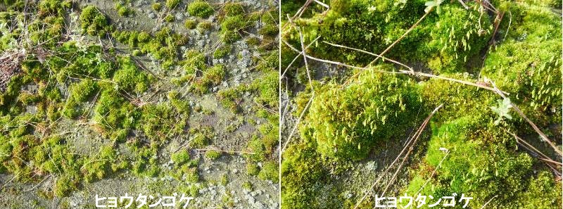 ハイヒバゴケ(這桧葉苔)は、南極大陸を除く世界中に分布し、木の幹、岩、壁などに這うように密生する、黄色から濃緑色の非常に丈夫な蘚類です。その繁殖力の強さと乾燥への耐性から、北半球では身近なコケであり、かつては柔らかさを利用して枕やマットレスの詰め物としても使われていました。日当たりの良い地面や岩、樹木の根元など。酸性環境や汚染にも強いです。茎が長く(2〜10cm以上)伸び、枝を規則的に羽状に出して、イトスギのような葉に覆われます。凹面で、鎌のように曲がった形をしていて、胞子を含んだ少し曲がった円筒形の胞子嚢を、秋から冬にかけてつけます。世界的に分布していますが、国内では本州の日本海側(日本海要素)に多く見られます。丈夫で環境適応力が高いため、環境緑化や苔庭の素材としても利用されることがあります。